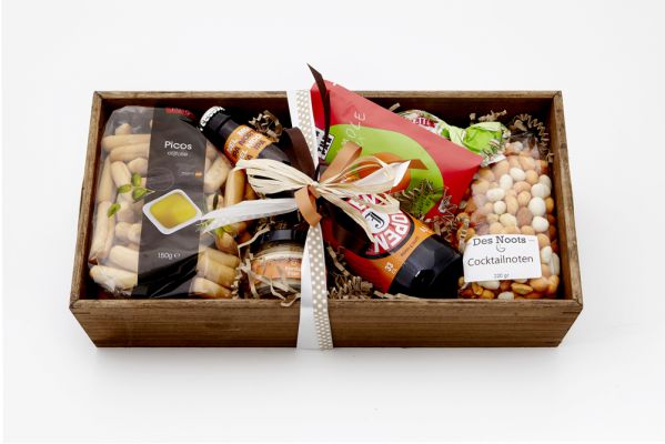 Dit mooie, multifunctionele kistje is het perfecte cadeau voor elke bierliefhebber. De combinatie van het flesje bier en de hartige snacks maakt dit tot een heerlijk geschenk voor elke gelegenheid. Het cadeaupakket wordt verpakt in transparante folie.