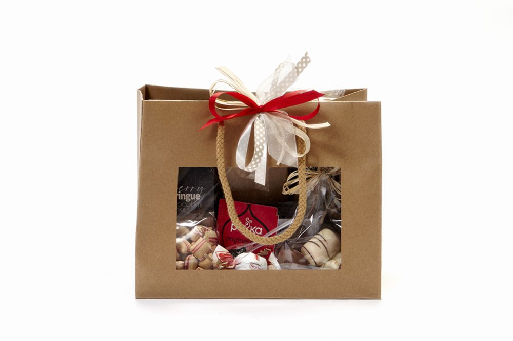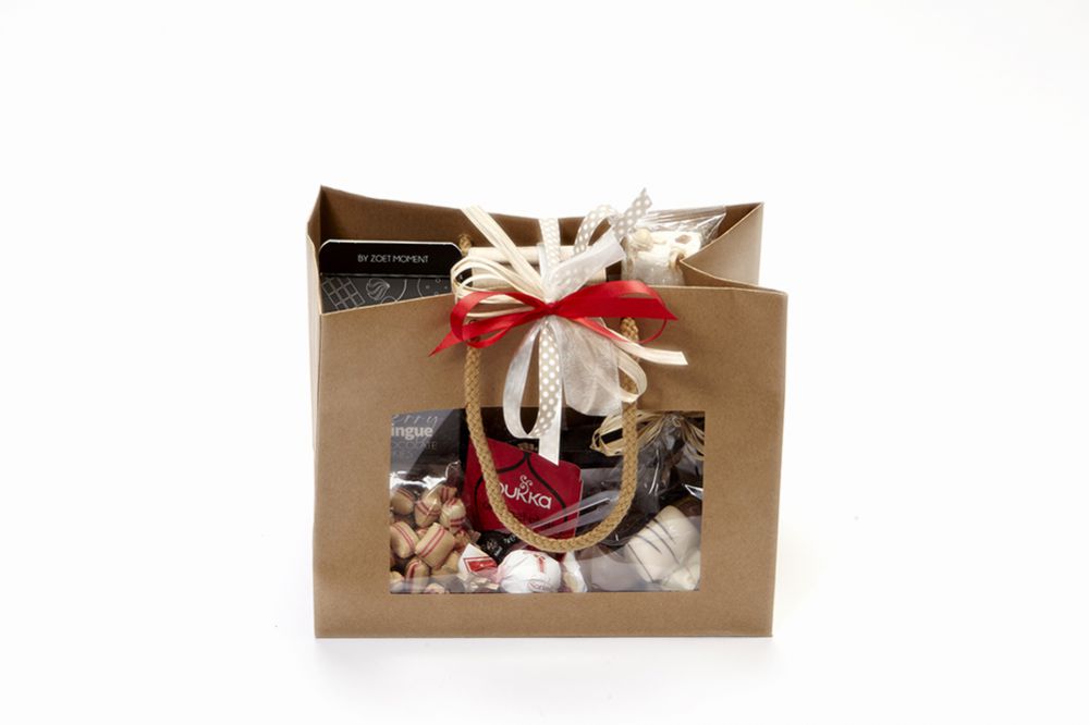 Een leuke venstertas gevuld met allerlei heerlijkheden om iemand eens goed mee te verwennen. Als waardering voor uw personeel of als relatiegeschenk een leuk en lekker cadeau. Relax en geniet!